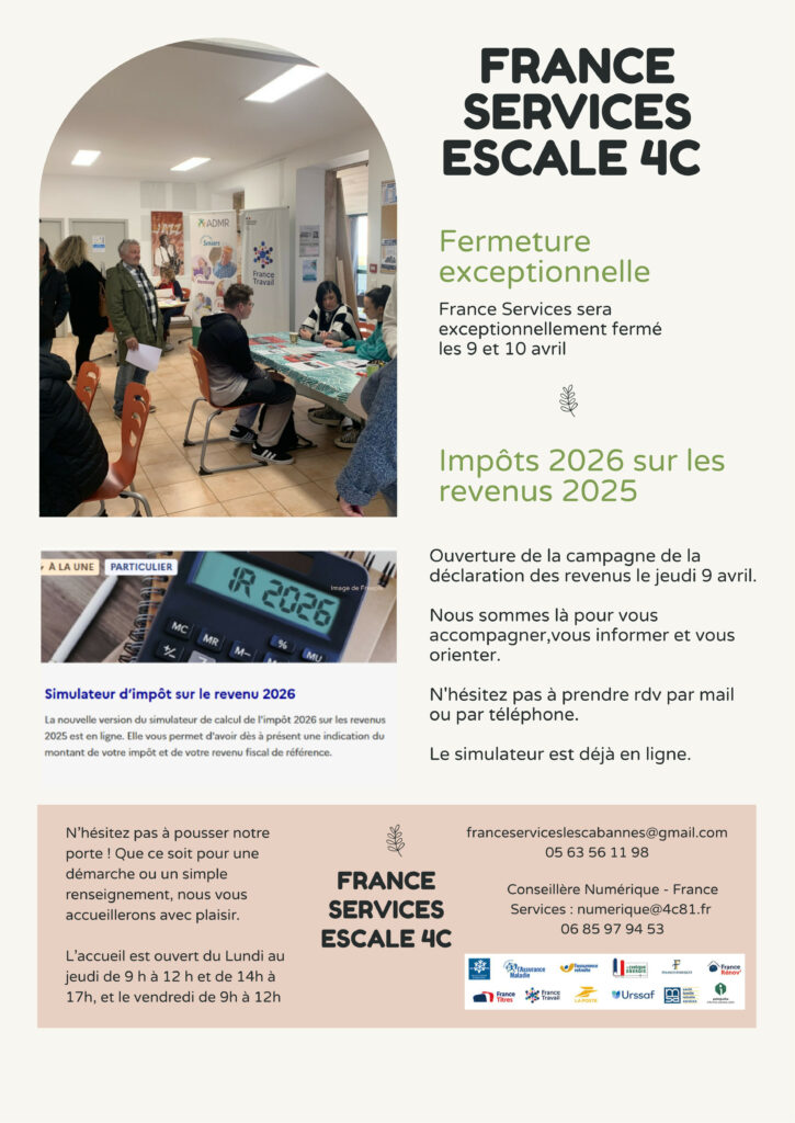 les lundi de 9 h à 13 h les mardi de 14 h à 17 h et les vendredi de 9 h à 12 h30.